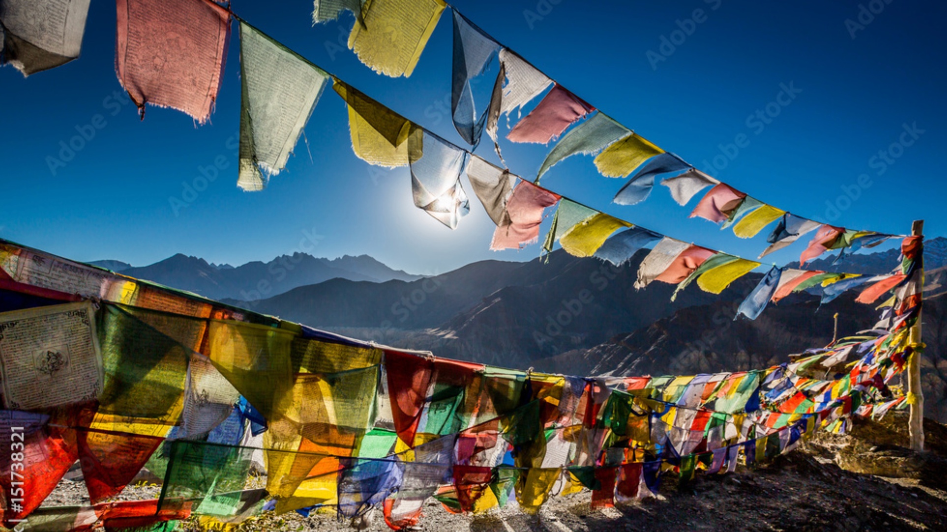 Traditional Tibetan prayer flags with mantras and blessings